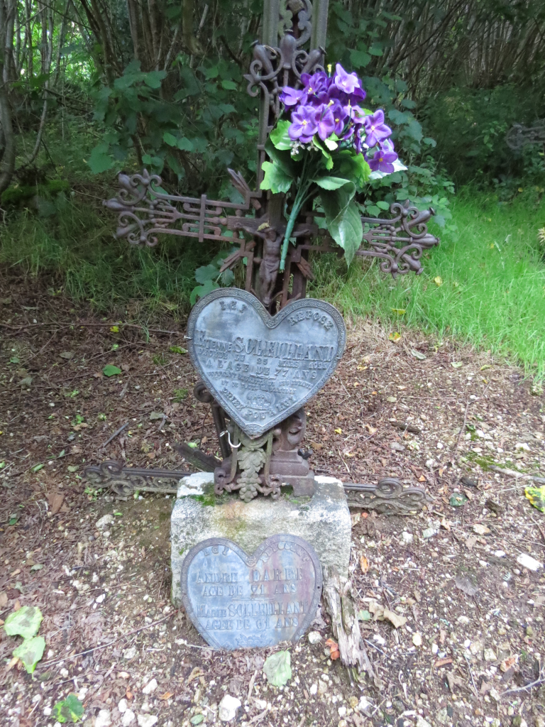 autrefois on mettait des cœurs sur les tombes. Cette photo provient d’un vieux cimetière en Auvergne qu’un cousin a défriché. Les corps avaient été transportés dans un nouveau cimetière. Le vieux est resté longtemps à l’abandon. ici l’ancienne tombe de l’arrière grand père de mon conjoint.