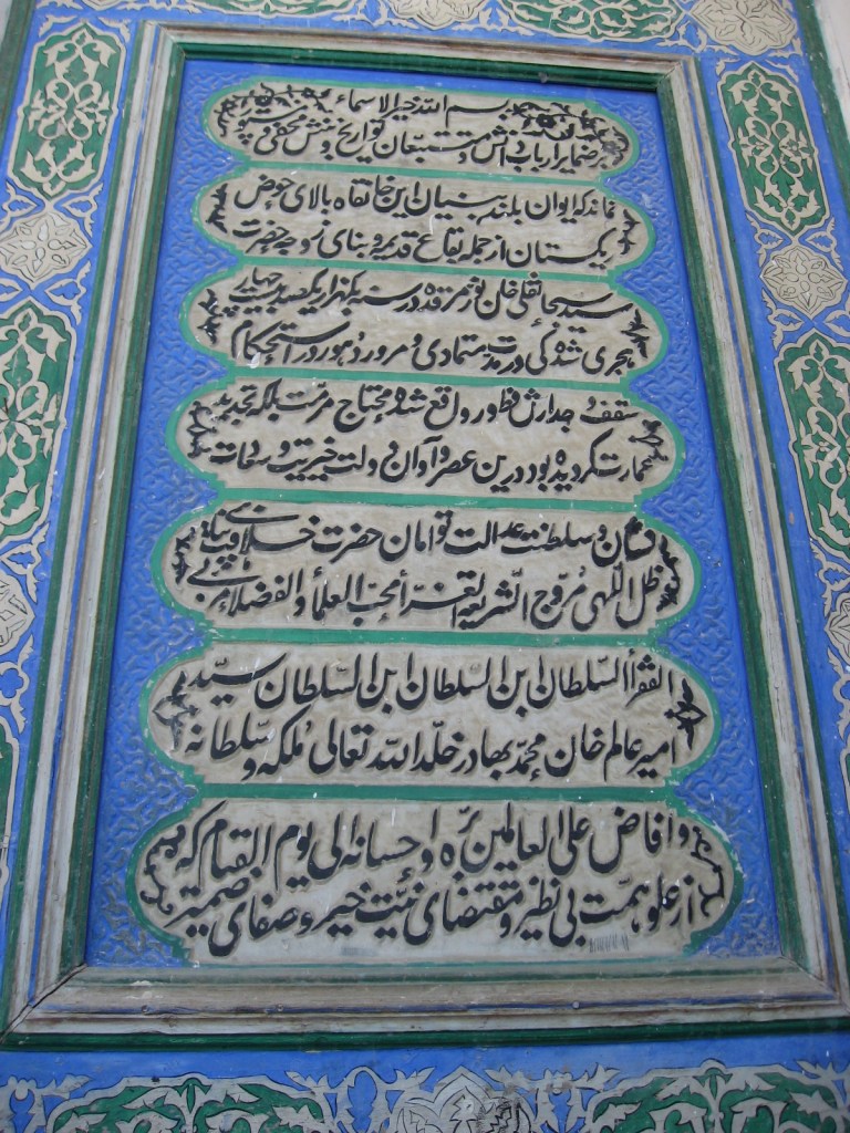 un voyage en Ouzbékistan et une plaque avec des écrits. Ne me demandez pas ce qui est écrit : aucune idée mais c’était à Samarkande.