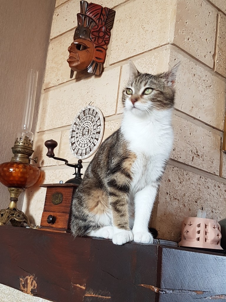 décoration très hétéroclite, ton chat a l’air d’apprécier !! …