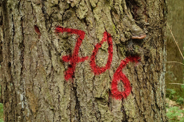 Mais un jour, des hommes au nombre de six, arrivèrent de la ville. Comme toujours cinq discutaient paroles et paroles et encore conciliabules et simagrées à n’en plus finir pendant que le sixième un pot de peinture à la main, inscrivait sur le tronc du chêne en chiffres rouge orangé 7 0 6 .
