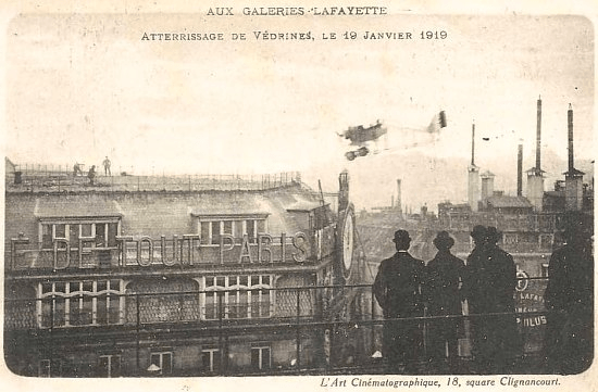 19 janvier 1919 : Jules Védrines se pose sur le toit des Galeries Lafayette