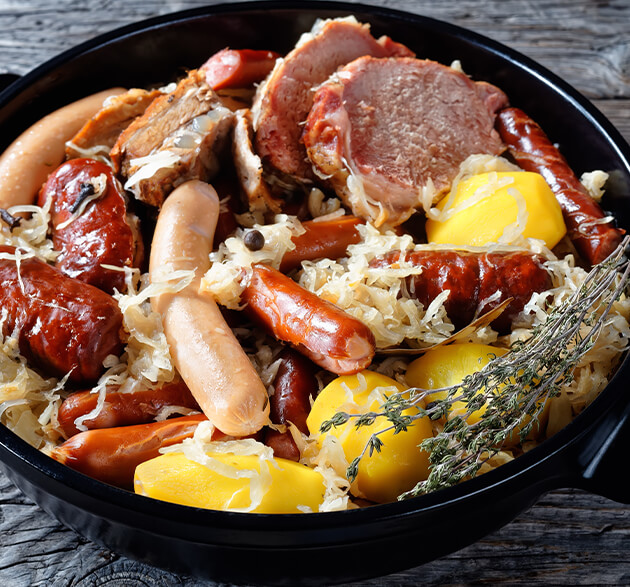 Par les temps qui courent une bonne choucroute avec ou sans moutarde avec vin blanc ou bière cela tient au ventre !