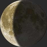 Phase de dernier croissant. Lors de cette phase, l’illumination de la Lune diminue chaque jour jusqu’à la Nouvelle Lune. Au cours de cette partie du cycle, la Lune se rapproche du Soleil vue de la Terre et le côté nuit de la Lune fait face à la Terre, seulement un petit bord de la Lune étant illuminé. 35% eclairage