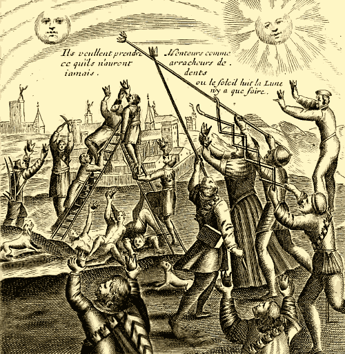 A ces mots, la dame en colère s’en va trouver son mari qui était dans une salle voisine avec quelques amis et le pria de la suivre en lui racontant d’abord ce qui s’était passé. Le mari accompagna sa femme et apostropha violemment le domestique, le menaçant de le renvoyer s’il se refuse plus longtemps à donner à son fils ce qu’il demande. – En vérité, monsieur, dit celui-ci, madame n’a qu’à le lui donner elle-même. Il y a un quart d’heure qu’il a vu la lune dans un seau d’eau et il veut que je la lui donne. A ces paroles toute la compagnie partit d’un éclat de rire.
