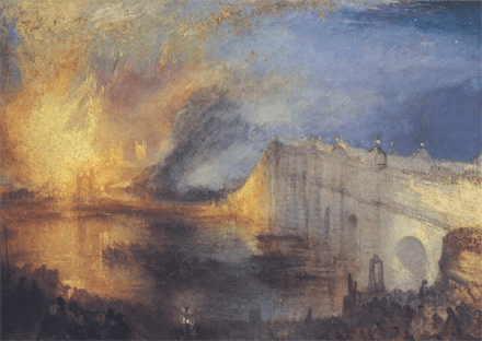 Le 16 octobre 1834, un incendie ravage le Parlement de Londres, entre la Tamise et l’abbaye de Westminster. Le peintre William Turner, précurseur de l’impressionisme, a représenté l’incendie en faisant ressortir le reflet des flammes dans la Tamise. Le Parlement sera reconstruit par l’architecte Charles Barry en style néogothique ; la nouvelle Chambre des Lords sera achevée en 1847 et les Communes en 1852.