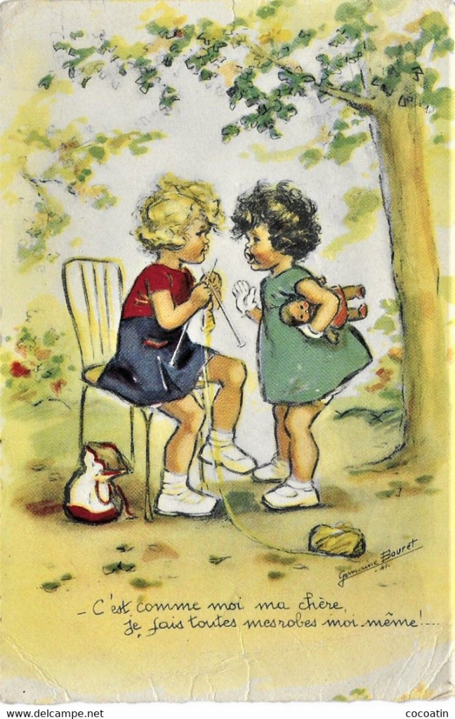 Elles sont vraiment craquantes ces deux petites filles, j’aime beaucoup aussi la fraicheur et la joie de vivre de ces illustrations. Si je me souviens bien les dessins de Germaine Bouret se sont retrouvés aussi sur des assiettes. Je me souviens en avoir vu chez ma grand mère paternelle .