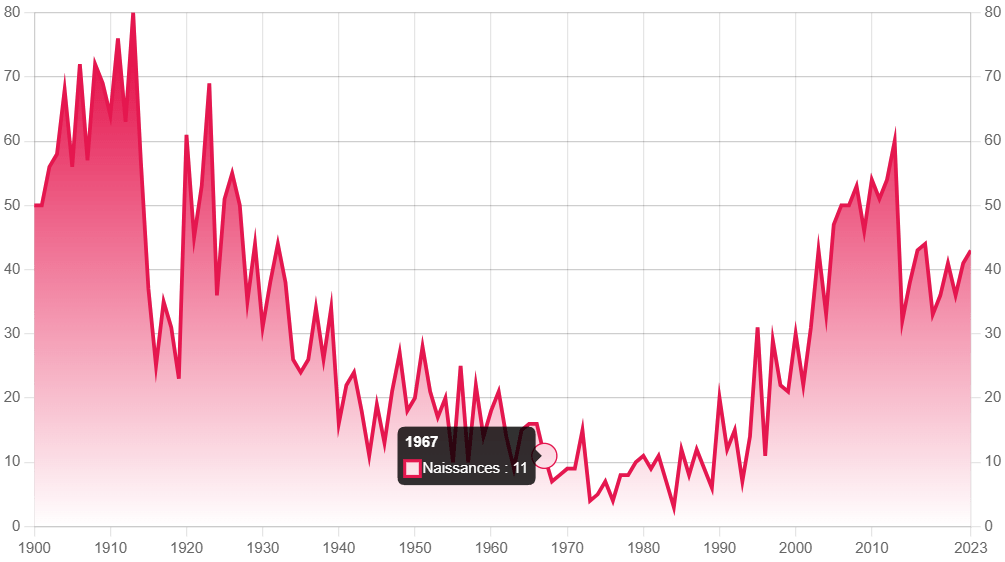 Naissances en 2023 : 43 garçons  – L’âge moyen des Anselme est de 41 ans