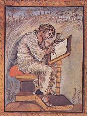 Collecteur de taxes au service du tétrarque Hérode, Matthieu est à son bureau quand passe Jésus qui lui dit : « Viens et suis-moi ». Aux pharisiens qui l’interrogent sur son choix, Jésus répond : « Je ne suis pas venu appeler les justes mais les pécheurs ». L’apôtre Matthieu est l’auteur du premier Évangile qui contient en particulier le Sermon sur la montagne, discours du Christ à l’adresse des déshérités. Voir le très beau film de Pasolini, cinéaste italien (athée) : L’Évangile selon Saint Matthieu. Matthieu est figuré dans l’iconographie par un ange. Dans la miniature, il est représenté à son pupitre. Mathieu est d’origine hébraïque. Ce prénom provient de « Yah » et signifie « don de Dieu ».