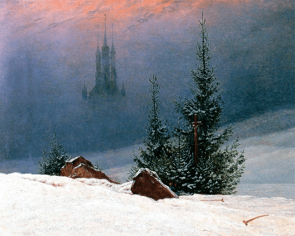 Symbolique forte de la nature et de la solitude l’idée de « redonner vie sous la glace » La touche d’ocre vient contrebalancer l’aspect de froidure.