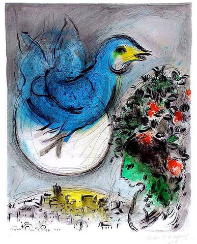 Marc Chagall est un peintre et graveur né le 7 juillet 1887 à Liozna Biélorussie , naturalisé français en 1937 et mort le 28 mars 1985 à Saint-Paul-de-Vence où il est enterré. Chagall est l’un des plus célèbres artistes installés en France au xxe siècle, avec Pablo Picasso. Son œuvre, sans se rattacher à aucune école, présente des caractéristiques du surréalisme et du néo-primitivisme. Inspirée par la tradition juive, et le folklore russe, elle élabore sa propre symbolique, autour de la vie intime de l’artiste. Chagall s’est essayé, outre la peinture sur toile, à la gravure, à la sculpture, à la céramique, à la poésie, à la peinture sur vitrail, sur émail.