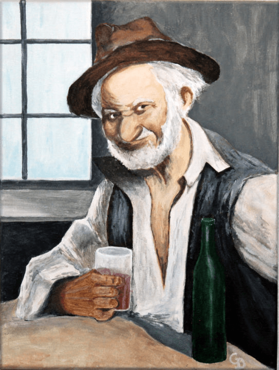 Fardoise nous propose de boire un p’tit coup, un p’tit verre. Un peintre que je ne connais pas qui se nomme Gerard Detrait qui peint de merveilles. . C’est un peintre contemporain dont vous trouverez les oeuvres sur notre ami Wiki. j’ai choisi cette toile « un petit vieux au verre » pour le regard égrillard du pêrsonnage qui a l’aire de nous dire que finalement un p’tit c’est bon . Je vous conseille de prendre le temps de parcourir ses oeuvres, elles valent le détour et le temps de flaner un peu